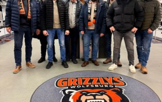 Organisiert von Alex Schubert (RAUMConceps by Alexander Schubert) erlebten acht Mitglieder der WVGF den 4:3 Sieg der Grizzlys Wolfsburg in der Overtine gegen die Augsburg Panthers. Neben sportlichen Einblicken bei einer "Behind the Scene-Tour" u.a. in die Kabine der Profis, erlebten die Teilnehmer bei leckerem Essen und guten Gesprächen eine