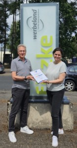 WVGF-Geschäftsführer Hans-Jürgen Dölves überreichte die Ehrenurkunden an Katrin Calberlah (Calberlah Heizungsbau) und an Nazli Akkaya (Fitzke Werbetechnik)